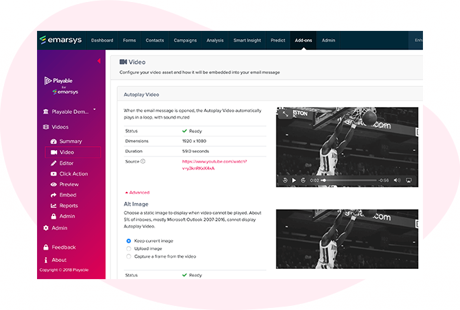 Playable ist vollständig in Emarsys integriert, sodass Sie Ihren E-Mails schnell und einfach Videos hinzufügen können