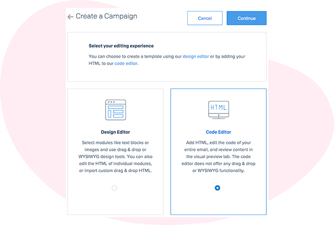 Das Tutorial geht davon aus, dass Sie Ihre HTML-E-Mail-Vorlage mit dem vorbereitet und hochgeladen haben Code-Editor Möglichkeit. Erstellen Sie Ihre E-Mail-Vorlage mit dem Design-Editor wird ebenfalls unterstützt.
