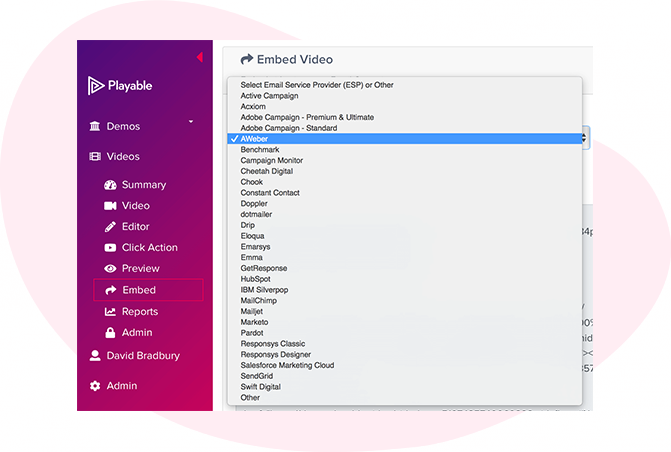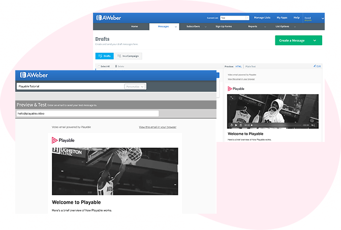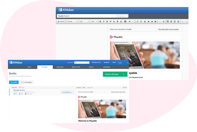 Playable is fully integrated with AWeber, making it quick and easy to add videos to your emails