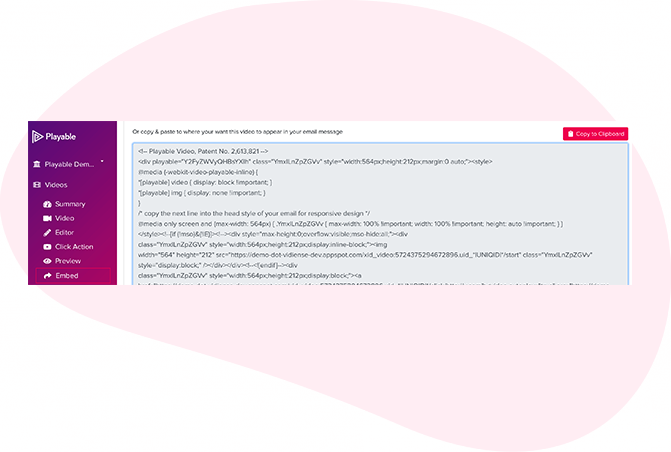 Click the Copy to Clipboard button to grab all the Embed Code to paste it into a Code Block within your AWeber email template.