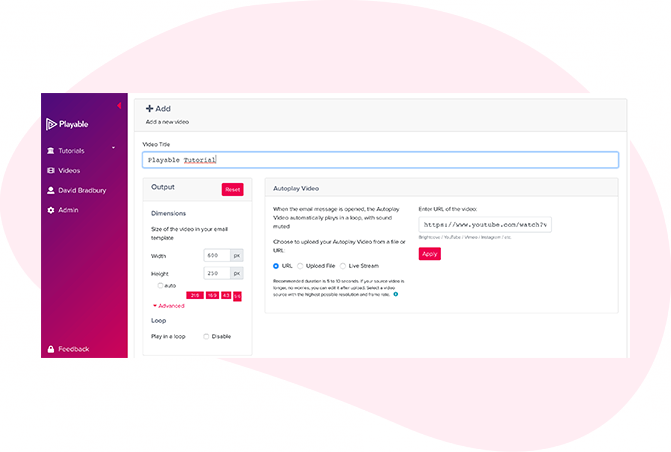Create a title for your video, this will be used to locate it in the future in your Playable account and in reporting. Referencing the dimensions of the image position holder in the email template you can now enter the size (width) of the video content you are looking to create, or keep the optimum size as suggested by Playable.