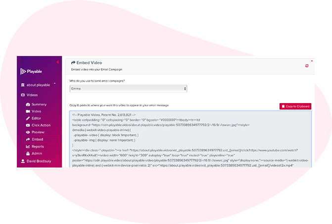 Click the Copy to Clipboard button to grab all the Embed Code to paste it into your Emma email template.