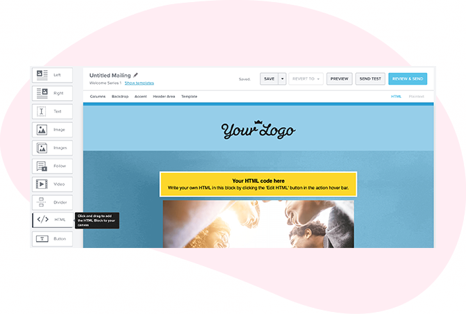 Simply drag and drop the </> HTML Code Block to where you want the video to appear in the email.
