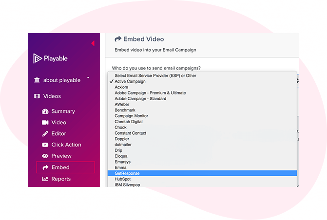Playable is fully integrated with GetResponse, making it quick and easy to add videos to your emails