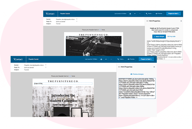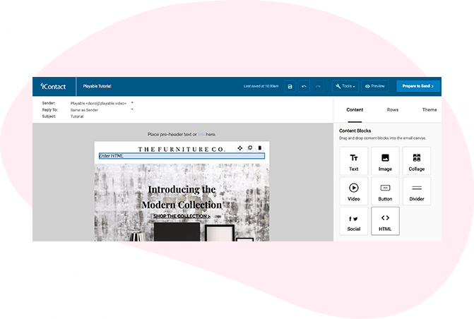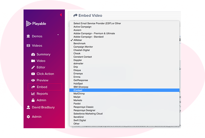 Playable is fully integrated with iContact, making it quick and easy to add videos to your emails