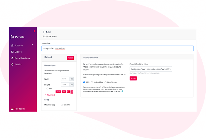 Create a title for your video, this will be used to locate it in the future in your Playable account and in reporting. Referencing the dimensions of the image position holder in the email template you can now enter the size (width) of the video content you are looking to create, or keep the optimum size as suggested by Playable.