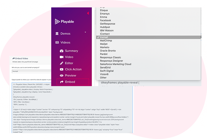 To embed the video into your email template select Inxmail from the drop-down list of email providers, on the Embed page.