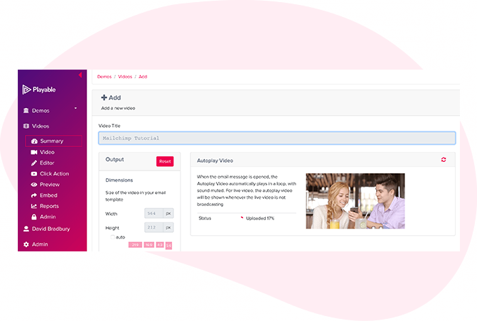 Create a title for your video, this will be used to locate it in the future in your Playable account and in reporting. Referencing the dimensions of the image position holder in the email template you can now enter the size (width) of the video content you are looking to create, or keep the optimum size as suggested by Playable.