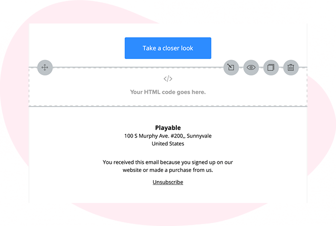Simply drag and drop the HTML Code Block to where you want the video to appear in the email. You will return to this step shortly to add the video via this code block.