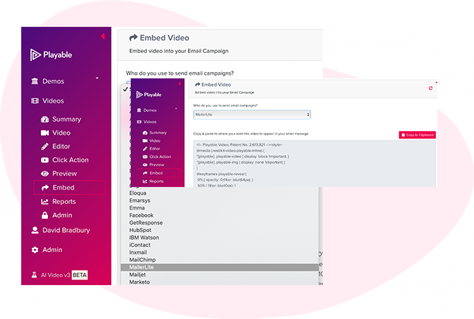 Playable is fully integrated with MailerLite, making it quick and easy to add videos to your emails