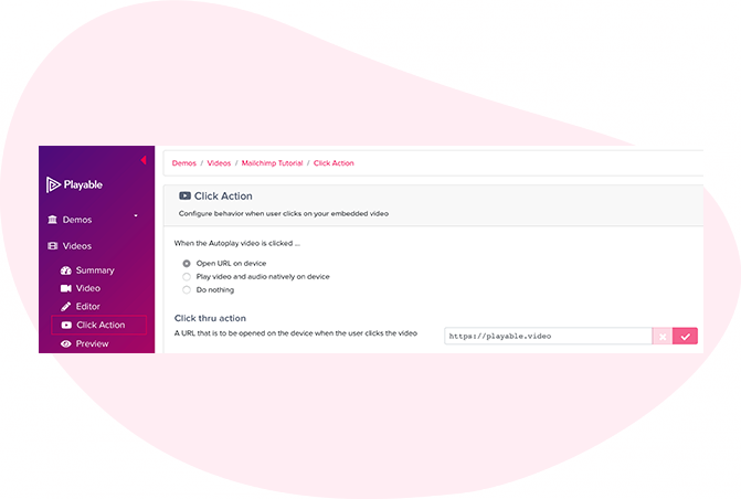 If you wish to use the video created by Playable, select Click Action from the menu to continue preparing the video.