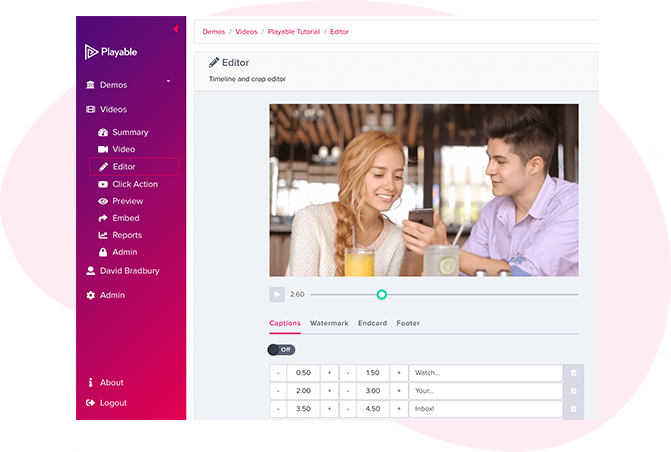 As your video is uploaded Playable creates a 10-second preview. You can choose to use this version of the video or create your own version using our Online Editor.