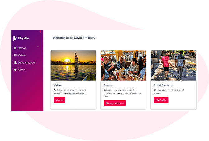 You will start on the Playable home page of your new account. To start creating a new video for your email click Videos.