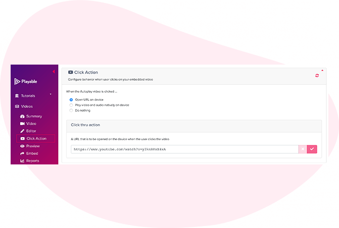 If you wish to use the video created by Playable, select Click Action from the menu to continue preparing the video.