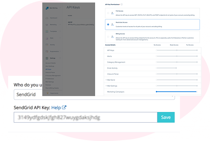 To obtain your API Key, go to the API Key section of your SendGrid Dashboard and click the Create API Key button.