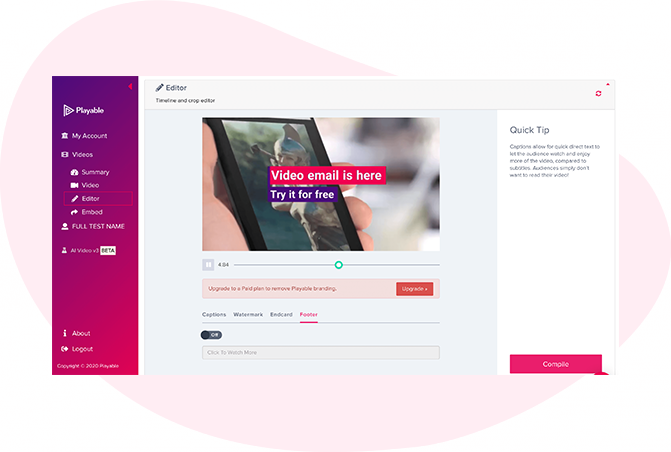 Videos need to be fresh to be effective. Playable’s online editor gives you the tools to create multiple versions (increasing ROI) and add enhancements to the video to drive a stronger CTA (Call To Action).